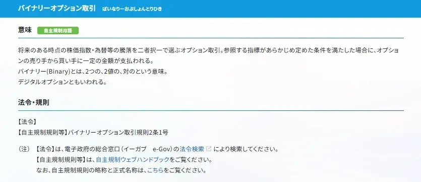 金融庁は海外バイナリーオプション業者の利用について注意喚起を行っており、トラブル時の救済は期待できません。利用する場合は十分なリスク理解が前提となります。