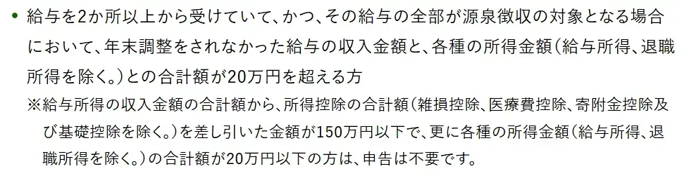 - 確定申告=年間利益20万円超で必要(給与所得者)